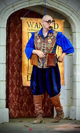 At the Virginia Fantasy Festival, Les S. Moore brings his roguish charm and legendary pickpocketing antics to the festival lanes. Gather round the stage, keep a hand on your purse or pouch, and prepare for an unforgettable performance where laughter, mischief, and old-fashioned showmanship take center stage.